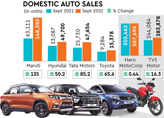 In the two-wheeler segment, Hero MotoCorp, the country’s largest two-wheeler maker, saw a marginal rise in dispatches during September. The company clocked domestic sales of 507,690 units, a rise of 0.44% compared to the same month last year.