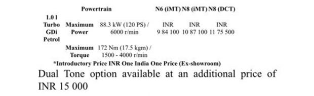 Here are the variant-wise prices of Hyundai i20 N Line: