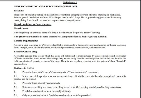 As per the NMC guidelines, the doctors should “advocate” hospitals and local pharmacies to stock generic drugs. Prescribe only those generic medicines that are available in the market and accessible to the patient.
