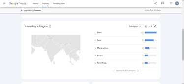 According to the Interest Over Time data of Google Trends, ‘Respiratory Diseases’ was most searched on October 24 and there were multiples highs and lows in the subsequent days.