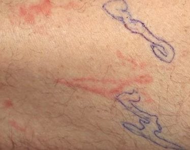 The pictures of the case reveal that doctors drew outlines of the initial placement of the larvae just under the skin, showing that they moved over the course of 24 hours.