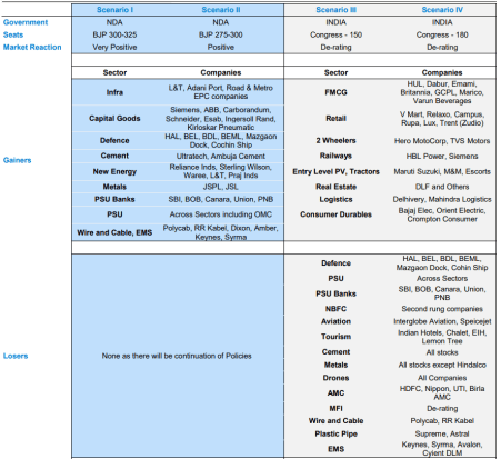 Per the report, irrespective of the regime that comes at the centre, sectors such as FMCG, auto, healthcare, IT services, private banks and capital goods are expected to perform well and cited as prudent defensive hedge against election results.