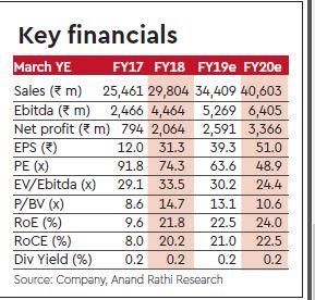 Despite persistent pressure on the gross margin since input costs rose due to the input-tax-credit withdrawal, focused and disciplined cost controls led to a 530bps margin expansion in FY18. The reduced Dunkins’ drag (from 240bps in FY17 to 118bps in FY18), the shuttering of non-profitable stores, investment in creating value products, focus on cost-rationalisation and greater productivity would continue to expand margins. Moreover, the recently-commissioned plant at Greater Noida would reduce freight and labour costs. Thus, we expect the Ebitda margin to expand 80bps, from 15% in FY18 to 15.8% by FY20.