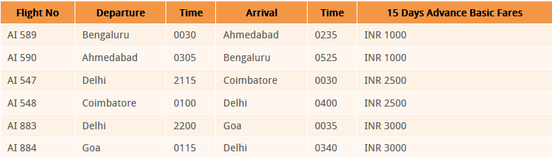 Effective 30th November 2018, Air India introduces night departures at attractive fares for the following routes.