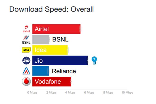 Reliance Jio’s average 4G download speed was recorded as 5.81 Mbps while Vodafone bagged the second spot with 7.45 Mbps average speeds. However, when it comes to overall metric, where both the speed of 3G as well as 4G internet is taken into consideration, the equation changes drastically. In this case, Reliance Jio emerges on top even though the speeds remain at 5.81 Mbps. Airtel is second at 5.05 Mbps with Vodafone scoring 4.06 Mbps.