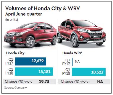 In the last two years, the products launched in the domestic market — the BRV and the Jazz — did not generate enough volumes for the company. Volumes of its most popular product, the City, also started to slip as a result of the launch of the hybrid variant of the Ciaz by Maruti, which attracts only 12.5% excise duty as opposed to 28% for the City.