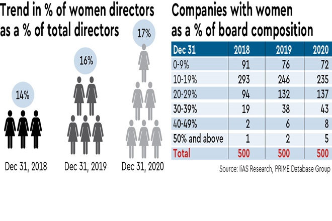 Given how the share of directorships held by women in the Nifty 500 companies has risen nearly three-fold over six years to 17% at the end of December 2020 from around 6% in March 2014, it must be said the regulatory push for more women directors has yielded results. However there are not too many women in executive positions, a mere 11%.