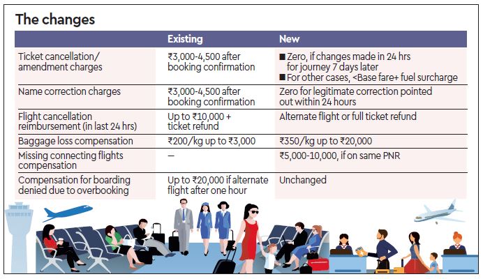 The compensation for flight cancellation by airlines in the last 24 hours of the scheduled take-off has been abolished. Under the new rule, the carriers can offer refund to the passengers or arrange an alternate flight. Under the current system, the flyers are given compensation of up to Rs 10,000 in addition to the ticket refund.
