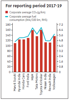 Among the top 10 carmakers, Toyota Kirloskar Motor had the highest average carbon dioxide (CO2) emission at 160.7 g/km, while in terms of fuel efficiency, Toyota cars consume around 7 litres of fuel for a 100-km distance. However, both the companies received the compliance certificate under the Corporate Average Fuel Efficiency (CAFE) norms, which require average corporate CO2 emission to be less than 130 g/km till 2022.