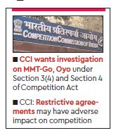 The Competition Commission observed that both OYO and MMT have considerable presence in their respective market segments and any restrictive agreement which may lead to refusal to deal with some players or exclusive arrangement with some players, may potentially have adverse effect on competition.