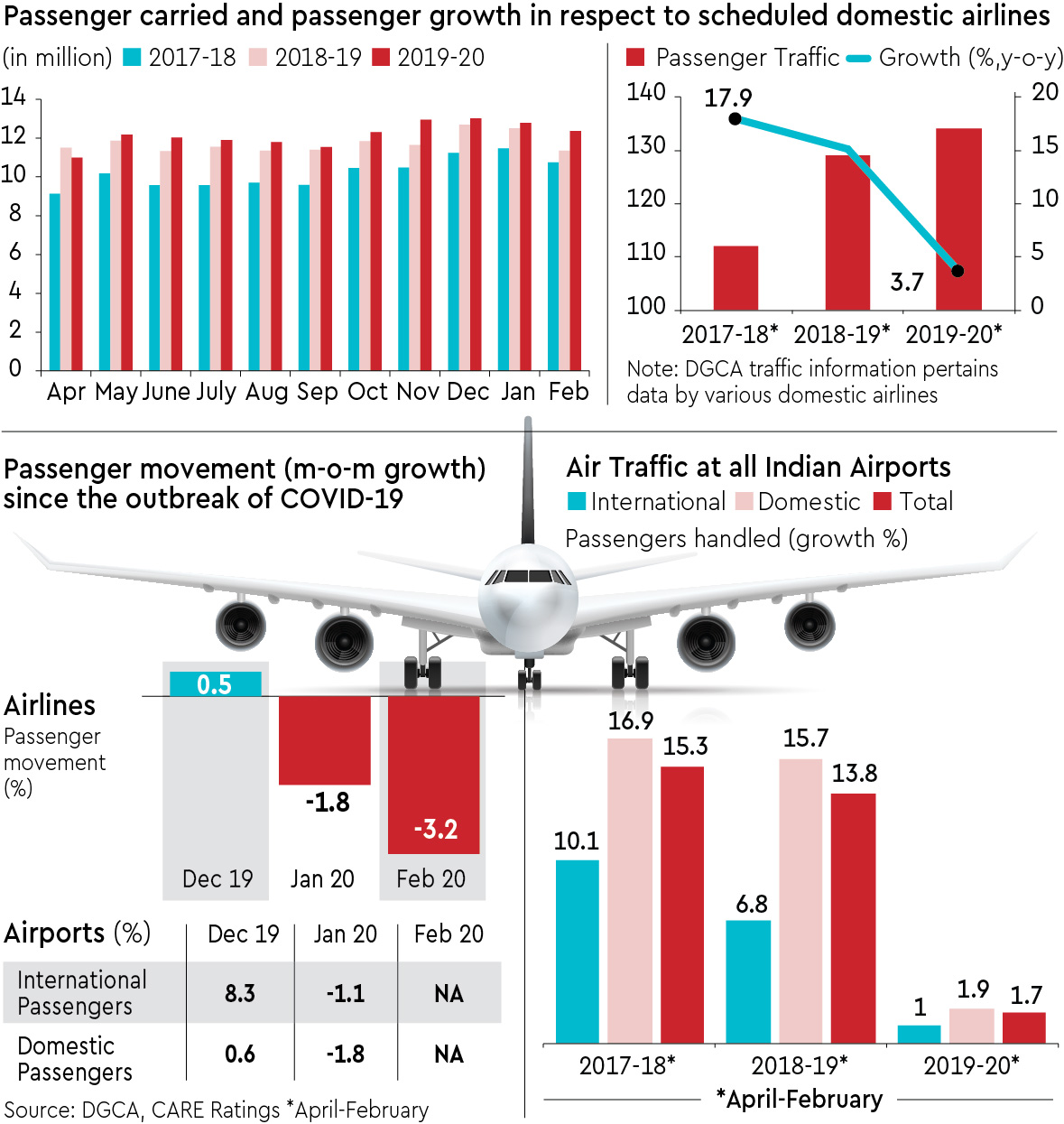 Even as the macros of the aviation industry are in favour of its growth, it may not fully recover anytime soon from the effects of Covid-19. Post lockdown, airlines will be operating at sub-par capacity. Passenger traffic for carriers is expected to register de-growth of 20-25% in FY21, CARE Ratings has said.