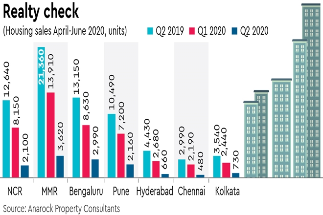 New launches, too, plunged to a new low across India’s top seven cities in Q2 2020. Anarock said new launches fell 98% y-o-y with merely 1,390 units getting launched in the quarter. New launches accounted for just four projects — two in Bengaluru and one each in Pune and Kolkata. There were no new launches in MMR, NCR, Hyderabad and Chennai.