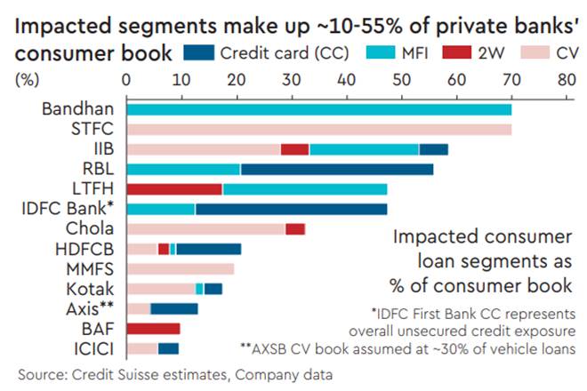 If other private banks were to witness similar trends, CS estimates this would translate into a delinquency of 5-10% of their consumer loan books.