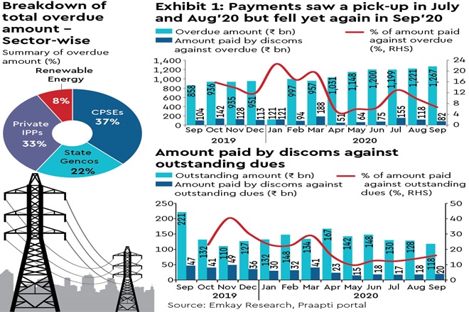 Discoms’ pending dues to gencos rose 48% yoy (4% mom) to Rs 1.27 trn in Sep’20. The total outstanding amount was Rs 1.39 trn (up 28% yoy/3% mom) – breaching the Nov’15 peak of Rs 1.35 trn.