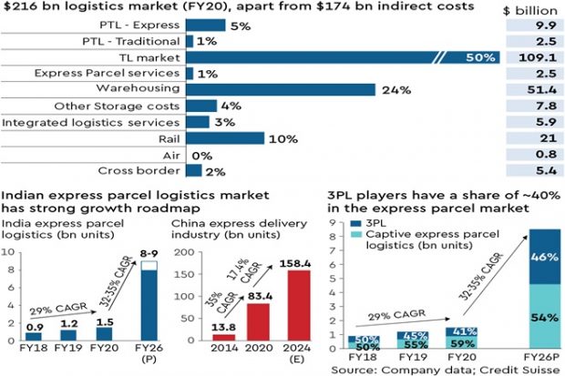 The express parcel market was about 2 bn shipments in FY21, of which about 40% was handled by third-party players.
