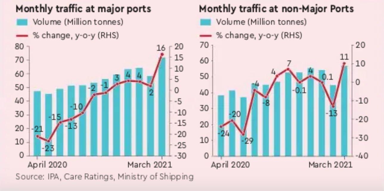 However, there was a sharp increase in cargo handled in March, with volumes up 16% y-o-y (23% m-o-m) and 11% y-o-y (27% m-o-m) for major and non-major ports, respectively.