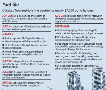 Dewan Housing Finance Corporation, the stressed financier, and its lenders are set to meet on Wednesday to discuss the draft resolution plan. The company will also hold a meeting with all institutional creditors, including mutual funds, on September 27. According to banking sources, the agenda of the meeting is to get all lenders together on the same page over the resolution plan.