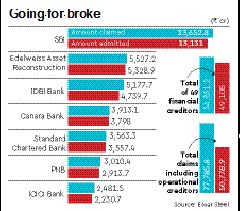 Essar Steel, which has a steel-making capacity of 9.7 million tonnes per annum, owes more than Rs 45,000 crore to lenders, of which Rs 31,671 crore was classified by banks as non-performing assets as of March 31, 2016. SBI leads a consortium of 22 lenders that accounts for 93% of the company’s debt. Essar Steel also owes Standard Chartered Bank close to Rs 3,500 crore; Essar Steel’s Mauritius-based subsidiary had taken a loan from SCB guaranteed by Essar Steel’s promoters. On July 4, Essar had moved the Gujarat High Court against its inclusion in the list of 12 defaulters to be referred to the NCLT. The company’s counsel had argued in the court that its restructuring proposal was at an advanced stage and that the financial and operational improvements since March 2016 had not been taken into account by the RBI.