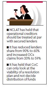 Citing the NCLAT’s earlier order, it said that what should be the percentage of claim amount payable to anyone — financial creditor or the operational creditor or secured creditor or unsecured creditor — can be looked into by the CoC.