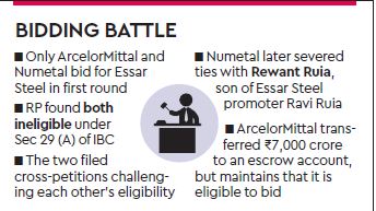 Both the companies put in bids in the second round after their offers in the first round were seen as invalid. Numetal faced disqualification as its 25% stake was owned by Aurora Trust of the Ruia family, the promoters of Essar Steel, while ArcelorMittal’s first bid was rejected because of it holding shares in loan defaulting companies Uttam Galva Steel and KSS Petron.