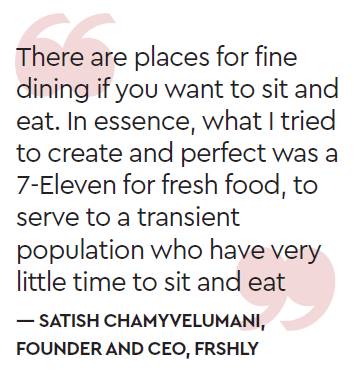 In a bid to make good food accessible, everywhere, Satish Chamyvelumani, CEO and founder of Frshly, came up with the idea to set up a number of outlets that are driven by technology and served by top restaurants locally. “There are places for fine dining if you want to sit and eat. In essence, what I tried to create and perfect was a 7-Eleven for fresh food, to serve to a transient population who have very little time to sit and eat,” says Chamyvelumani. Frshly is a marketplace for restaurants that is operating in the brick-and-mortar space. The outlets are completely automated and require a minimum of 40 square feet of area to be installed.