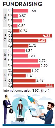 India’s Internet firms raised a little over $10 billion in 2019 helped by a chunky $4.41 billion in funding in the the October-December quarter, according to the data sourced from market research firm Tracxn. Total funds raised by the companies stood at $8.57 billion in 2018, the data showed.