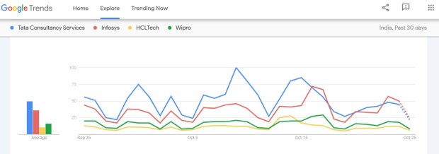 As the second-quarter earnings season kicked off in early October, major tech companies such as Tata Consultancy Services (TCS), Infosys, HCLTech, and Wipro were on investors’ watchlists. They were among the most searched company names on Google so far in October.