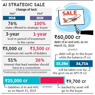 With regard to eligibility criteria, to make the disinvestment process attractive, a host of norms have been relaxed compared to the ones stipulated in 2018.