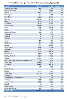 Talking about the GST collection numbers for April 2024 by Gunjan Prabhakaran, Partner & Leader, Indirect Tax, BDO India, said, “The all-time high GST collection in April 24 has come on the back of strong growth in GST collections from Northern States like UP, Punjab, Haryana, Delhi etc. The GST collection in April month has traditionally been higher (the previous highest GST collection was also achieved in April, 23), given that it reflects the economic activity in the month of March, which is the last month of the fiscal year.”
