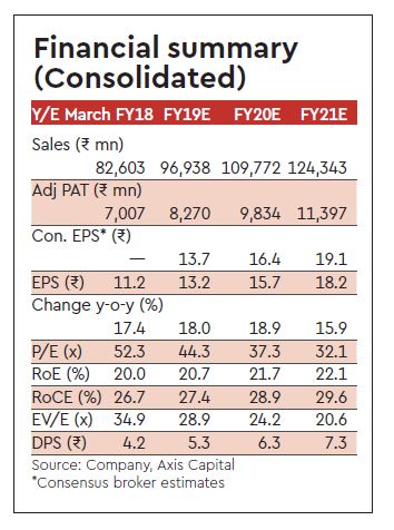 A&P expenses, while higher in Q2, to remain at 3% of revenue going forward. Capex in FY19 (including new RAC plant) would be Rs 5 bn; regular capex post that would be reduced to Rs 2 bn driving RoCEs/FcFF generation.