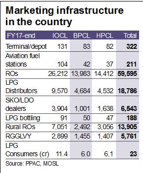 We expect free cash flow for HPCL to remain negative for the forecast horizon. HPCL is the most leveraged to marketing. An increase of Rs 0.10/litre in retail auto fuel margins would increase its EPS by 4%. IOCL and BPCL, with lower leverage to marketing, would see EPS increasing by 2% and 3%, respectively. We value the OMCs using SOTP. We roll over partially to FY20 for arriving at September 2018 targets. We reiterate Buy on IOCL and HPCL, with targets of Rs 558 and Rs 583, respectively. We upgrade BPCL to Buy from Neutral, with a target of Rs 640. IOCL remains our top pick. HPCL is likely to be affected by how the strategic sale of government stake pans out.