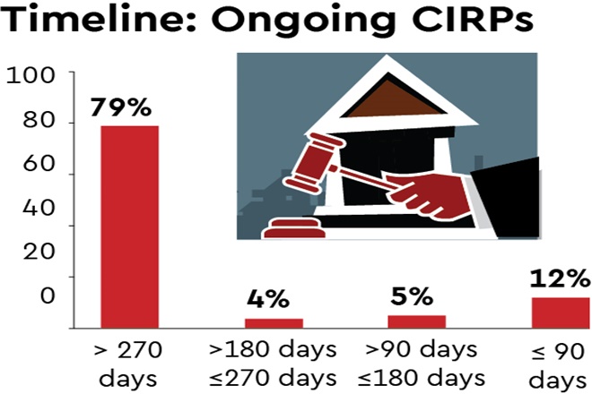 Since very few cases were admitted to the National Company Law Tribunal during FY21, IBBI data showed that only 12% of the ongoing cases were less than 90 days old after admission. Similarly, 9% of the ongoing cases in the corporate insolvency resolution process were between 90 and 270 days. The number of the unresolved cases is high even after IBBI had allowed exclusion of the lockdown period from the calculation of CIRP process last March.