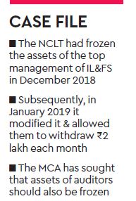 The ministry of corporate affairs (MCA) has already moved an application before the tribunal to add the concerned auditors to the list of entities whose assets needs to be frozen as they are also part of the chargesheet filed in the matter by the Serious Fraud Investigation Office. However, an order to this effect was reserved by the NCLT on Friday.
