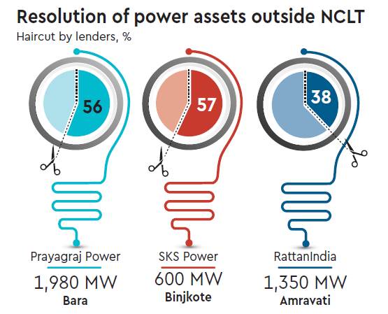 Lenders had taken much larger haircuts for other stressed plants resolved outside the NCLT. Tata Power acquired 75% stake in Prayagraj Power Generation Company’s 1,980 MW Bara power plant for Rs 6,000 crore, reflecting a haircut of more than 50%, while Hong Kong-based Agritrade Resources agreed to purchase 100% of the equity in SKS Power’s Binjkote power plant for Rs 2,170 crore, which is 57% lower than the loan outstanding from the unit.