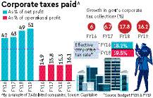 The growth in India Inc’s earnings remained subdued in recent years — in FY18, ratio of corporate profits to GDP fell to a 15-year low — but firms’ tax outgo rose at a steady pace during the period. Of a sample of 3,486 listed companies tracked by Capitaline, taxes paid as a percentage of operating profit grew from 14.9% in FY16 to 16.1% in FY19; against net profit, the tax outgo of these firms rose from 42% to 51% in the period.