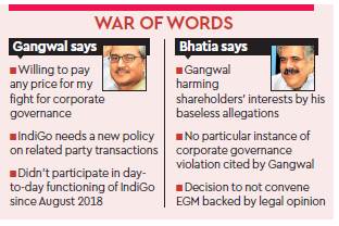 Speaking to FE, Gangwal dismissed allegations of harming shareholders’ interests by going public on his differences with partner Bhatia, and called it as a character assassination attempt by the Bhatia-controlled InterGlobe Enterprises (IGE) group.