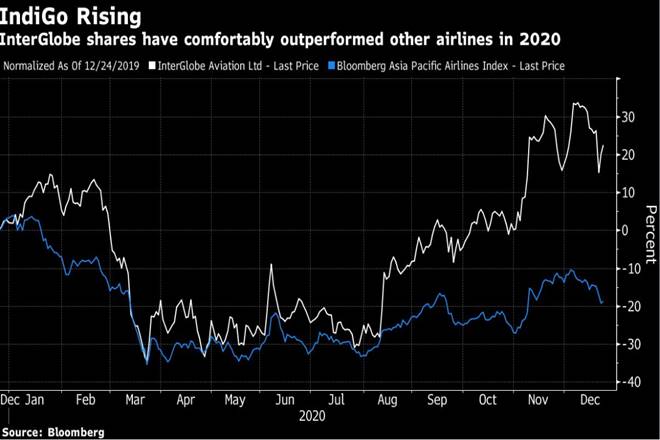 InterGlobe’s shares rose as much as 4.2% Wednesday. They’ve climbed 22% this year, while a Bloomberg gauge of Asia Pacific airlines has dropped 21% and an index of global carriers is down 29%.