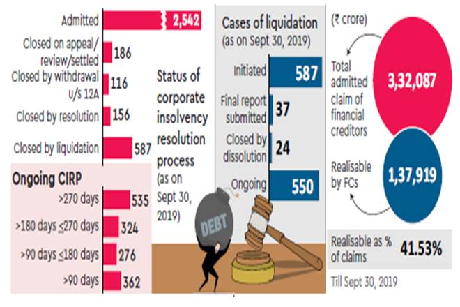In the September quarter, recovery (realisable amount) by financial creditors was Rs 27,064 crore or 34.4% of the admitted claims, thanks mainly to Rs 19,350 crore to be got from Bhushan Power & Steel.