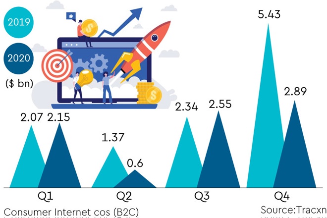 More than 10 start-ups across sectors ranging from beauty to payments turned unicorn in 2020 against nine in 2019. In fact, an estimated 65-70% of the investors who had placed their bets on the sector in 2019 invested again in 2020. Separately, B2B internet firms raised close to a billion dollars in 2020 compared with $3.56 billion in 2019, the data showed.