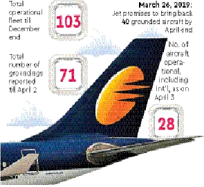 Jet, which had informed the civil aviation ministry on March 26 that there will be no further grounding and that it will bring 40 of its grounded aircraft back into service by April end, in fact on April 2 grounded 15 more aircraft.