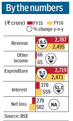 Jyoti Structure’s gross debt stood at R6,917 crore (including interest overdue) at the end of March 2016. In 2015-16, the firm reported a net loss of R502 crore on revenues of R2,495 crore; interest expenses rose 51% to R556 crore. In Q3FY17, it reported a net loss of R281 crore owing to R197 crore in interest costs.
