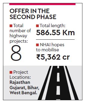 The eight projects proposed to be leased out in the second tranche comprise three different sections of NH-27, the country’s second-longest national highway; four different sections of NH 31 and one section of NH 115.