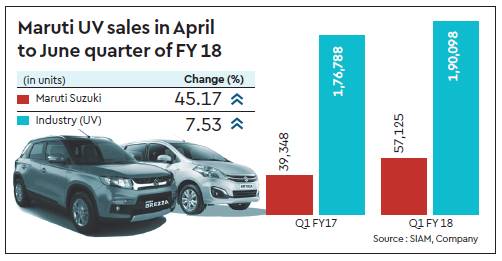 In June when most of the manufacturers reduced wholesale dispatches since dealers did not want to increase the inventory before the roll out of GST, Maruti’s dispatches in the UV segment increased by 42.9% y-o-y to 13,879 units.