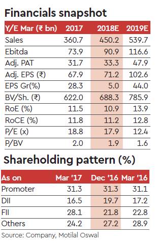 Expect long term holding discount to remain at elevated levels; see limited upside: Grasim’s long term holding discount to its investment in Ultratech has been ~40-45%. We expect this long term holding discount to exist for Grasim’s 60%/57% holding in Ultratech and ABCL respectively. Hence we value investments in Ultratech (at current market price) and ABCL (value benchmarked to PI Investments at Rs 313 bn) at 40% discount and investments in other group companies at ~50% discount to present market value. We thus arrive at fair value of Rs 1,384/share implying 9% upside from present levels. Maintain Neutral.