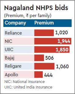 Apollo Munich Health Insurance Company Limited has made the lowest bid for Ayushman Bharat-National Health Protection Mission (AB-NHPM) for the state of Nagaland at Rs 444 per family. While Bajaj Allianz General Insurance was second lowest bidder at Rs 506, it is likely that Apollo Munich will handle the health scheme for the state of Nagaland.