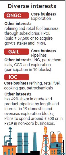 Also, oil marketing companies like IOC and BPCL have interests in domestic and overseas exploration blocks and crude and product pipelines.