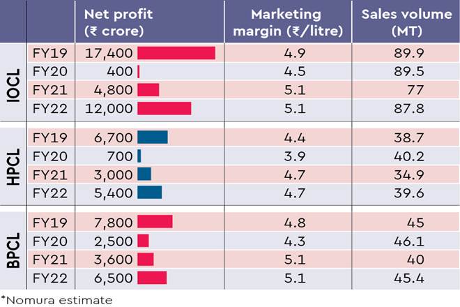 Such developments made Nomura downgrade Indian Oil Corporation (IOCL) and Hindustan Petroleum Corporation (HPCL) from ‘buy’ to ‘neutral’. Although the agency maintained ‘buy’ rating for Bharat Petroleum Corporation (BPCL), driven by the option for its divestment, the analysts noted that they ‘are now less sanguine’ about the deal.