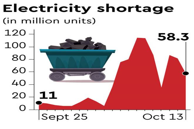 In the meantime, the national power load management agency has reported that capacity of power generating units under outage due to low coal stocks has reduced from 11 giga-watt (GW) on October 12 to 6 GW on the subsequent day. Electricity supply shortage of 58.3 million units (MU) was recorded on October 13 across the country, improving from the deficiency of 82 MU a day ago.