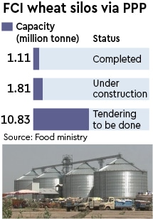 In a bid to attract investment into India’s food grain storage infrastructure from big corporate entities, the food ministry has approved a policy which encourages the private players to bid for construction of 249 state-of-art silos with close to 11 million tonne (MT) wheat storage capacity for the Food Corporation of India (FCI).