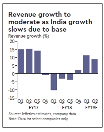 We expect Q2FY19 growth to be muted with revenue growth of 9% and margins down 100bps+ y-o-y and flat q-o-q. India business growth will moderate to 7% led by high Goods and Services Tax (GST) base.